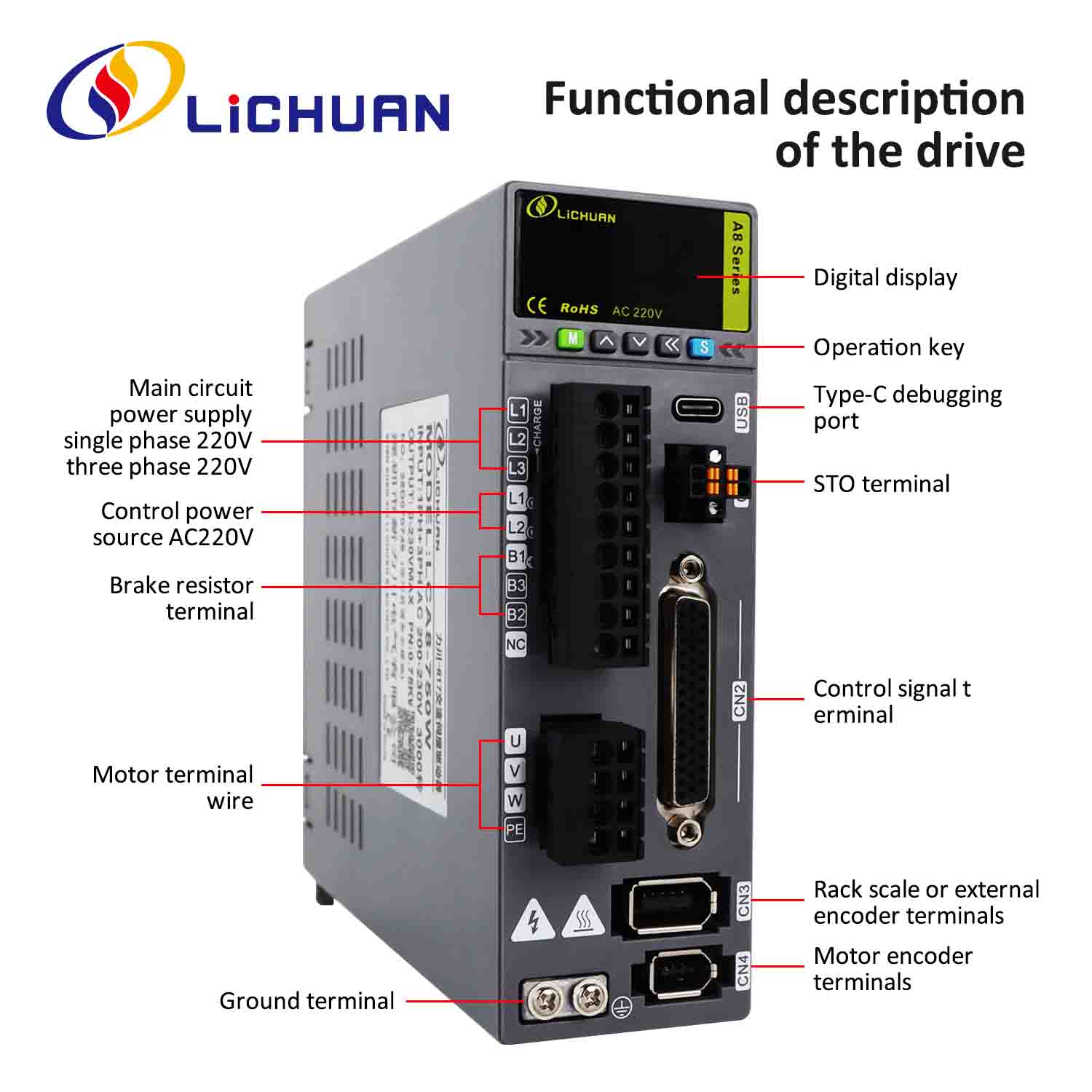 Bộ điều khiển động cơ servo Lichuan A8 có độ chính xác cao STO ABZ AC — Tổng quan về sản phẩm