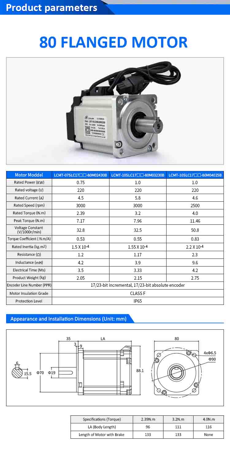 Bộ điều khiển động cơ servo Lichuan AC A8 Độ chính xác cao STO ABZ 750W 0,75KW 2,39N.m 220V 4,5A 2500/3000RPM IP65